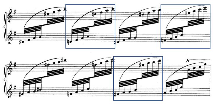15.下列譜例中,何處屬於「增六和弦」?