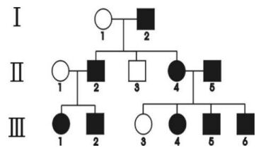 2. 右圖為人類某遺傳疾病之族譜。○代表女性,□代表男性,實心的●、■則代表遺傳疾病患者。此疾病的遺傳模式為何? (A)隱性遺傳 (B)顯性遺傳 (C)性聯遺傳(D)半顯性遺傳(E) 體染色體遺傳。