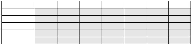 3. 承上題,請根據上述的實驗步驟,設計一適當的表格來記錄實驗結果。(2分)(注意該表格應與上述實驗步驟相符)→以下為範例表格:(1)灰色區域為數據登記區不用寫,(2)橫軸與縱軸表格需寫幾欄、幾列可自行評估與增刪