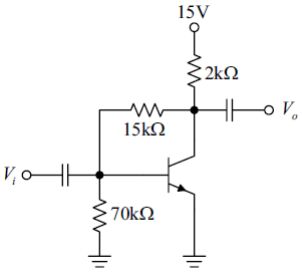 二、填充題1. 如圖所示電路,若電晶體的切入電壓VBE為0.7V且電阻15kΩ消耗150μW,試求該電晶體的β值為________。