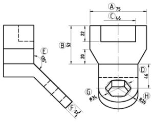 左圖中之尺度標註,分別以 A~H 的符號代表,下列選項的尺度標註何者錯誤? (A)AB (B)CD (C)EF (D)GH 。
