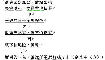 6. 下列是一節現代詩,請依詩意選出排列順序最恰當的選項。