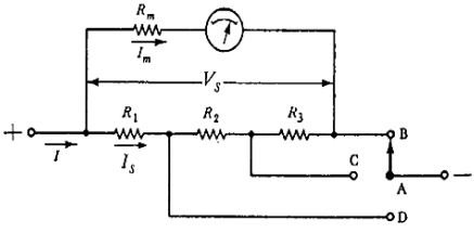 【已刪除】二、已知有三只埃爾頓分流器(Avrton shunt)與一個可動儀表組成下圚所示之安培計, 設 R