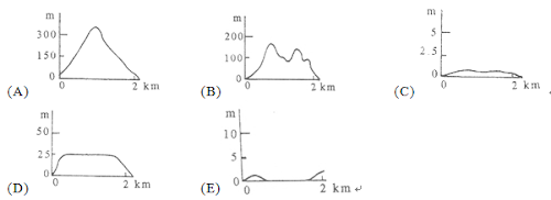 69. 如將該島的地形畫成剖面圖,則應與下列何者最接近?