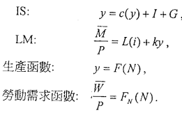 式中y,P,N,W,i及M分別代表所得、物價水準、就業量、名目工資率、利率 和貨幣供給量。(AO爲生產函數對N的一階導數。假設此經濟體名目工資率 完全僵固,致勞動市場成爲由需求面決定(demand-determined),則貨幣供給(M) 增加後,對內生變數y,P及i的影響爲何?(25分)