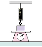 30. 一物體置於磅秤的上方,同時掛在一彈簧秤下,如右圖所示,已知磅秤的讀數為500 公克重,彈簧秤的讀數為300 公克重,且物體呈靜止不動,則物體的重量為多少公克重?