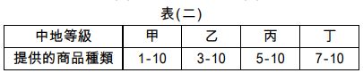 11.甲、乙、丙、丁分別是平原上的四級中地,表(二)是中地等級與其所提供的商品種類,其中商品 1 的商閾最大, 依序至商品 10 的商閾最小,則四級中地之中,何者的中地數最少? (A)甲 (B)乙 (C)丙 (D)丁。