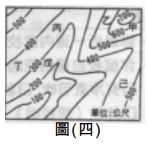 32.圖(四)是某地的等高線圖,立於「己」處的人,視界所及將能看到甲-戊處的哪些人? (A)甲 (B)乙 (C)丙 (D)丁 (E)戊。