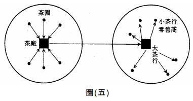 35.圖(五)是某地茶葉供銷區域圖,此種區域的劃分與下列哪些屬於相同的定義方法? (A)高雄中學通學區 (B)地中海型氣候區 (C)花蓮醫院醫療區 (D)南亞文化區 (E)美國棉花帶。