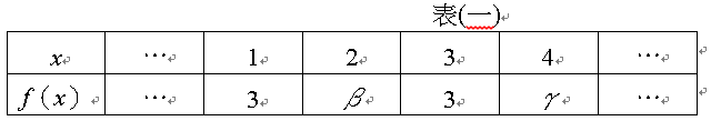 7. 已知線型函數f(x)=ax+b,其對應關係如表(一)。求β+γ=?