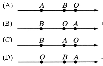 16. 在數線上,O為原點,A點的坐標為a,B點的坐標為b。利用下列三個已知條件,判斷A、B、O三點在數線上的位置關係。 已知條件:(1)a+b<0 (2)a-b>0 (3)ab>0 下列圖形何者正確?