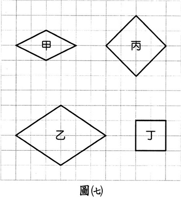 19. 如圖(七),四邊形甲、乙、丙、丁的四邊各自等長。請問下列哪一個敘述是正確的?