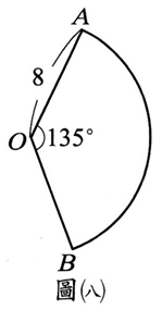 21. 如圖(八),有一扇形, OA=8公分,∠AOB=135∘,求AB 的長為多少公分?