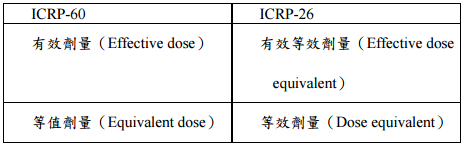 【已刪除】1. 試區分 ICRP-60 與 ICRP-26 兩報告對下述輻射量的異同。(15﹪) ICRP-60 ICRP-26 有效劑量(Effective dose) 有效等效劑量(Effective dose equivalent) 等值劑量(Equivalent dose) 等效劑量(Dose equivalent)