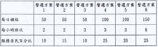 【已刪除】三、下列各公車服務的替選方案何者校佳?請說明判斷之依據。試述解決更複雜的此煺 評估問題(如10個以上的準則)的具體做法。(25分)