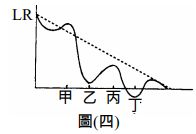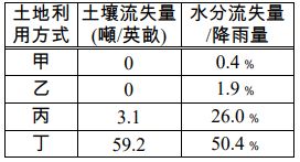 19.表(三)是非洲某地甲、乙、丙、丁四種不同土地利用方式與水土流失的關係,若按照「小米、草地、乾耕裸地、未放牧林地」的順序 排列,則下列何者正確? (A)乙丙丁甲 (B)丙乙甲丁 (C)丙丁乙甲 (D)丙乙丁甲