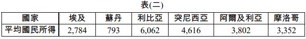 18.表(二)為北部非洲六個國家西元 2000 年的平均國民所得(單位:美元)。表中顯示北非各國平均國民所得差 異極大,此種差異與何種產業的發展具有最密切的關係? (A)農業 (B)林業 (C)牧業 (D)礦業