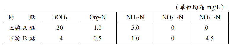 【已刪除】三、某環保人員在進行某河段污染防治規劃時,發現該河段上、下游之水質資料為: