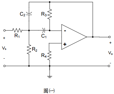【已刪除】一、圖(一)所示為理想運算放大器之帶通濾波器,試證其電壓轉移函數為以下形式
