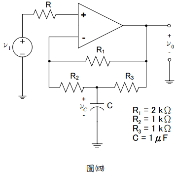 【已刪除】四、如圖(四)所示,為一理想運算放大器,假設v