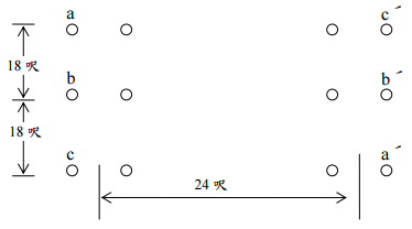 【已刪除】一、三相 161KV 並聯輸電線路排列如下圖所示,成束導體每根導體之 r'=0.0467ft,成束 導體之 d = 15 吋,試求每相每公尺之電感?(25 分)
