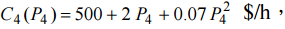 四、某電力系統含四座發電廠,且燃料成本函數(Fuel-Cost Function)分别為