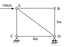 【已刪除】二、如圖之桁架,假設桿件之材料楊氏模數為 E,斷面積為 A。試求出各桿件軸力,並 求出 A 點和 D 點之水平位移。(25 分)