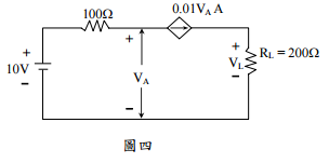 【已刪除】五、圖四所示電路,有兩個電源,一為電壓源,另一為電壓控制的電流源,試求負載 R