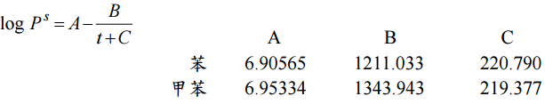 【已刪除】五、一個蒸餾塔的塔頂為 75%苯(benzene)及 25%甲苯(toluene)的混合物,現要設計 一個操作在 750 mmHg 下的全冷凝器(total condenser)。假設此混合物液相時為理 想溶液,請問操作溫度應該多少?(計算時請寫出你的理論依據,才知道你的觀念 及想法是否正確)。安東尼方程式,苯及甲苯的常數如下: