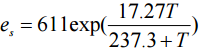 為飽和水汽壓(Pa);T 為溫度(℃)。註:1 kPa = 1,000 Pa = 1,000 N/m