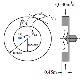 。葉片幾何尺寸及轉動方向如下 圖所示,求此水渦輪機所產生之功率(kW)?(25 分) 註:水之密度為 1000 kg/m