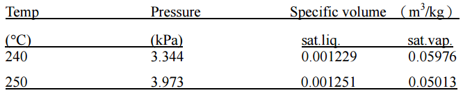 【已刪除】六、一 20 公升容器不含空氣,僅有 2 kg 純水,水溫為 245°C,請問其中液態水的 體積(m