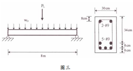 【已刪除】三、有一簡支梁及其斷面如圖三所示, f '