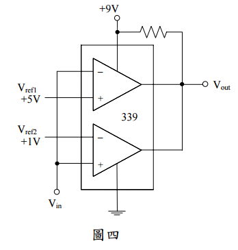【已刪除】四、圖四為由 339 比較器所組成之電路,若輸入信號為 V