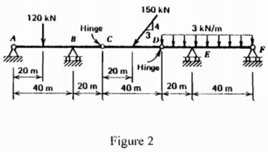 【已刪除】3. Please draw the shear and moment diagrams for the beam sliown in Figure 3. (20%)