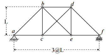 一、試求下圖所示桁架,當 bd 桿增溫 ΔT=40℃時,各桿受力。(25 分)