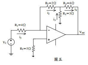⑶請利用圖四、圖五電路,設計一電路,使其輸出為 2V1+6V2。請不要更改圖四、 圖五電路,也不要更改任何元件值或加入新元件。