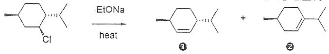 12. 試預測下列化合物加入 EtONa 當作鹼,進行 E2 脫去反應之產物?(A)只生成① (B)只生成②(C) ①②皆有,但②為主要產物 (D)以上皆非