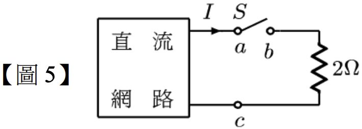 20.有一直流網路,如【圖5】所示,當S打開時Vab=18V,S閉合時,I=6A, 則當a,c短路時,I之電流為何? (A) 6A (B) 12A (C) 18A (D) 21A