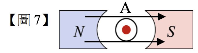 38.如【圖7】所示,導體A()表示電流流出紙面方向,試問該導體之運動方向為何? (A)向左 (B)向右 (C)向上 (D)向下