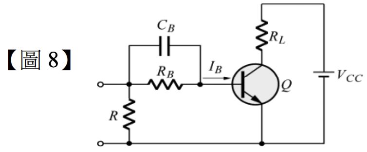 53.在【圖8】電路中電晶體Q作為開關使用,其電容CB及電阻RB的主要功能為何?(A)縮短電晶體的切換過程時間 (B)延長電晶體的切換過程時間 (C)提高電晶體導通時電流 (D)降低電晶體導通時電流