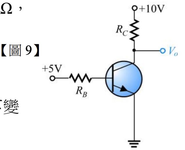 60.如【圖9】所示之CE組態放大電路,已知VBE=0.7 V,β=100,RB=100kΩ, RC=2kΩ,VCE(sat)=0.2 V,請問VO電壓為:(A) 0.2 V (B) 1.4V (C) 1.7V (D) 10V