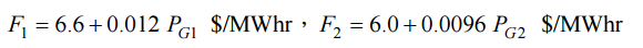 兩個發電機組之燃料增量成本(incremental cost)分別為: