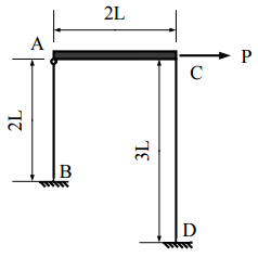 【已刪除】二、假設 AC 梁為剛性而 AB 柱與 CD 柱之材料楊氏模數為 E 且斷面二次矩為 I,試畫出 AB 柱和 CD 柱之剪力圖與彎矩圖。(25 分)