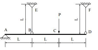 【已刪除】四、一根剛性棒 AD 由兩條鋼索 BE 和 DF 所吊住,假設鋼索之勁度相同且降伏軸力都 為 Aσ