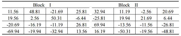 【已刪除】 ⑵下列是早期農業試驗的資料,其試驗有設置區集,屬於 RCB 設計,經過分析後 的部分結果(T. Eden and R. A. Fisher, 1929),下表中的數字是殘差的數值。