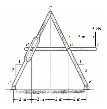 【已刪除】二、三根桿件以銷釘(pin)連結成圖示之結構,忽略桿件之重量及各桿件間之摩擦力, 試繪出並求出作用於桿件 BDF 及桿件 ABC 上之力。(20 分)