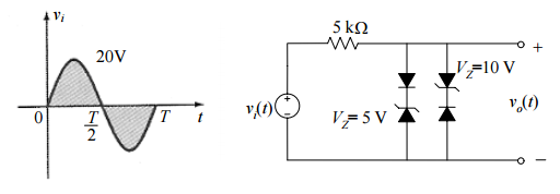 【已刪除】三、設下圖中二極體皆為理想二極體,試描繪其輸出 v