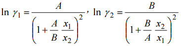 C。活性係數可由范拉方程式(van Laar equation)求得
