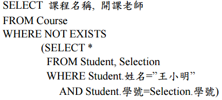 ⑵試用 SQL 寫出查詢:“王華老師所開課的所有課程的學生姓名及班級”。(10 分)